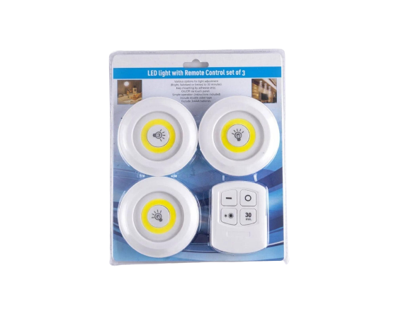 - The LED wall light with remote control is a set of three wireless and bright lights with remote control.