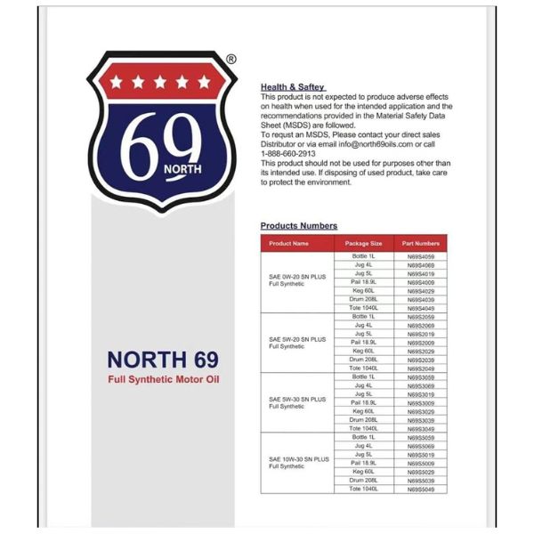 - 69 North motor oil offers greater fuel economy without compromising engine protection or durability.
