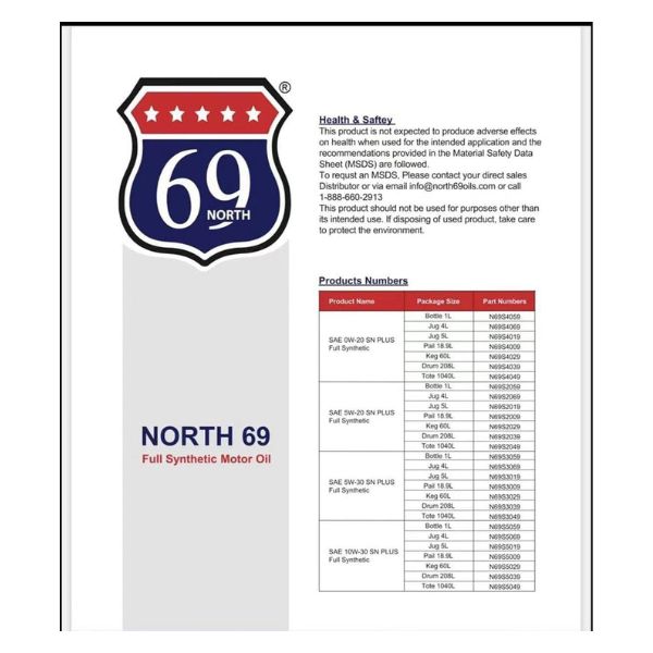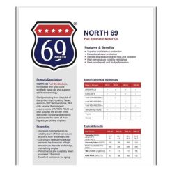 - 69 North motor oil offers greater fuel economy without compromising engine protection or durability.