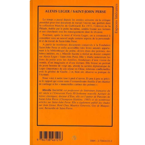 - A partir de nombreux documents conservés à la Fondation Saint-John Perse et enfin accessibles, Mireille Sacotte a réalisé un dossier complet sur Alexis Leger / Saint-John Perse.