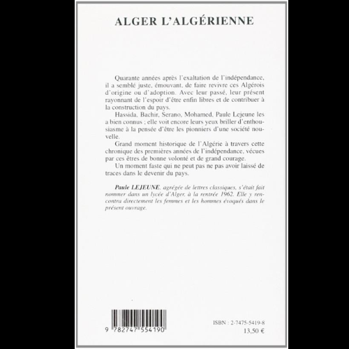 - Avec leur passé, leur présent rayonnant de l’espoir d’être enfin libres et de contribuer à la construction du pays.. Hassida, Bachir, Serano, Mohamed, Paule Lejeune les a bien connus; elle voit encore leurs yeux briller d’enthousiasme à la pensée d’être les pionniers d’une société nouvelle.