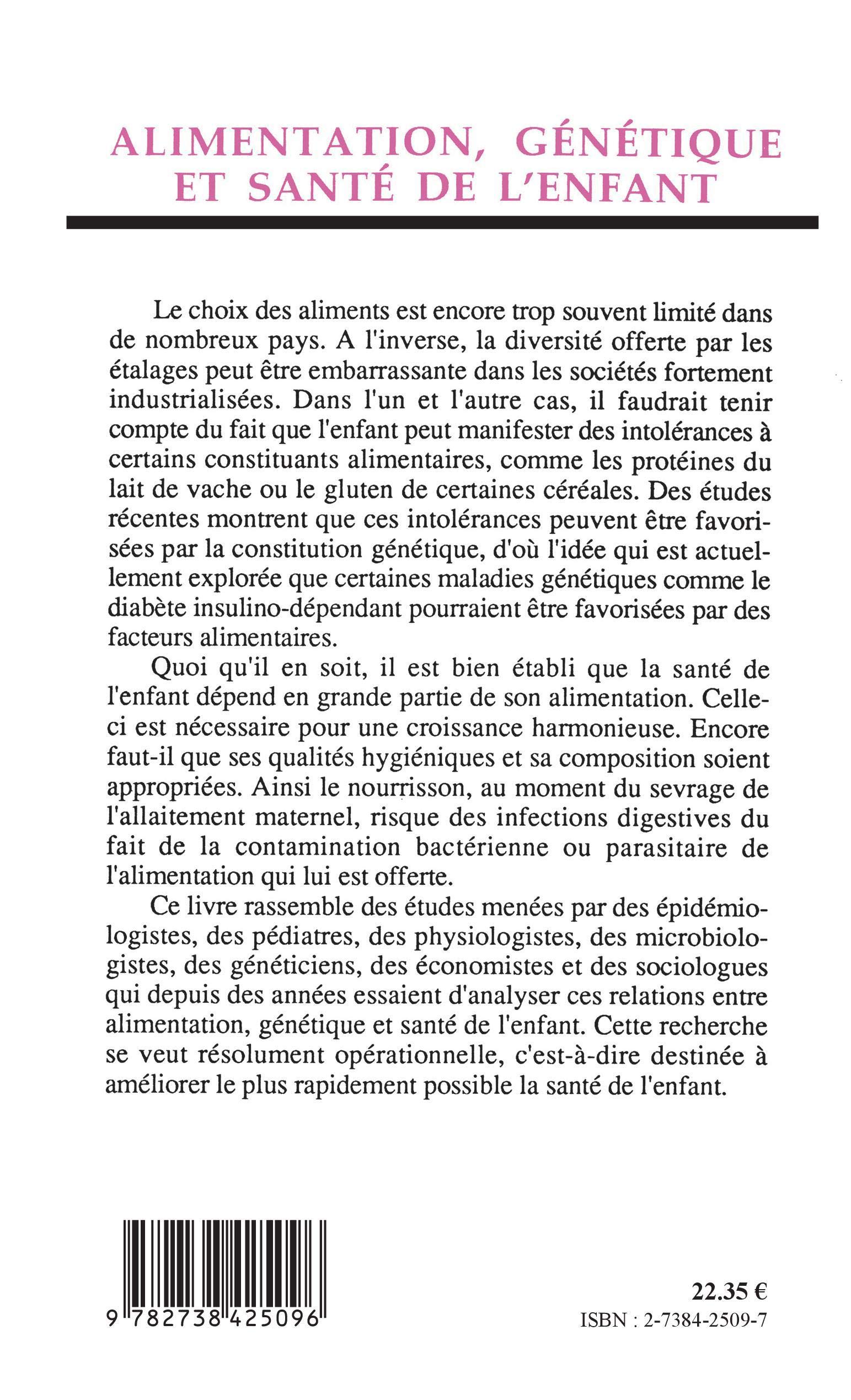 - Ce livre rassemble des études menées par des épidémiologistes, des pédiatres, des physiologistes, des microbiologistes, des généticiens, des économistes et des sociologues qui depuis des années essaient d’analyser ces relations entre alimentation, génétique et santé de l’enfant.