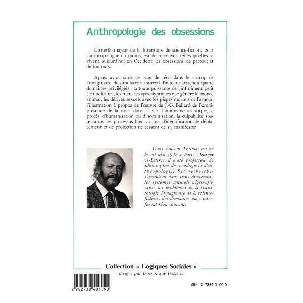 - Une lecture de la littérature de science-fiction à travers les obsessions qui s’y révèlent. 4 domaines sont analysés : l’infiniment petit (le nucléaire), les menaces générées par le monde animal, les dérivés sexuels et l’omniprésence de la mort illustrée par l’oeuvre de J.-G. Ballard.