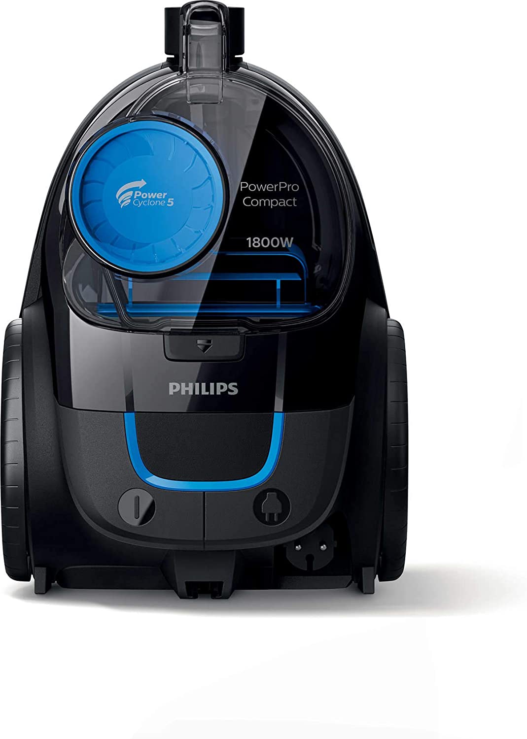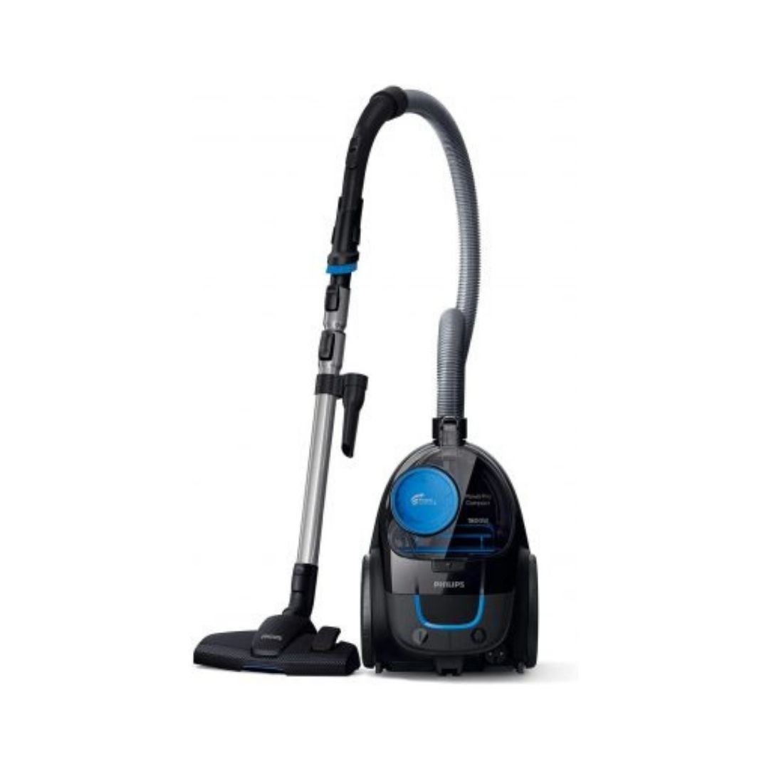 - Avec l’aspirateur sans sac Philips PowerPro Compact, le format compact est associé à d’excellentes performances. Obtenez un nettoyage impeccable grâce à la technologie PowerCyclone 5 et à la brosse MultiClean. Le moteur de 1800 W génère une puissance d’aspiration maximale de 470 W, pour un nettoyage impeccable à chaque fois.