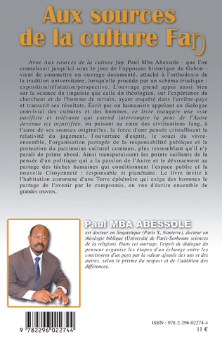 - Le peuple Fang compte environ deux millions d’individus que l’on retrouve dans quatre pays d’Afrique Centrale : le Gabon, le Congo, le Cameroun et la Guinée Equatoriale. Cet ouvrage prend appui aussi bien sur la science du linguiste que celle du théologien, sur l’expérience du chercheur et de l’homme de terrain. Ecrit par un humaniste appelant au dialogue des cultures et des hommes, ce livre inaugure une voie pacifiste et tolérante en puisant au coeur des civilisations Fang.