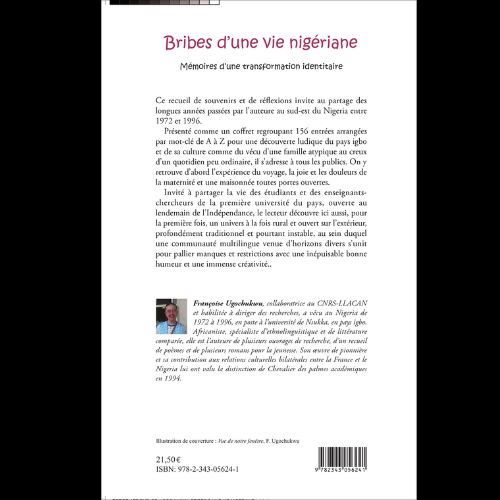 - Ce recueil de souvenirs, regroupant 156 entrées arrangées par mot-clé de A à Z, invite au partage des longues années passées par l’auteure au sud-est du Nigeria entre 1972 et 1996.