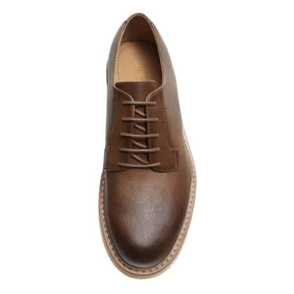 - Men’s lace-up shoe in brown leather, with hard-wearing rubber soles, from ZARA.
