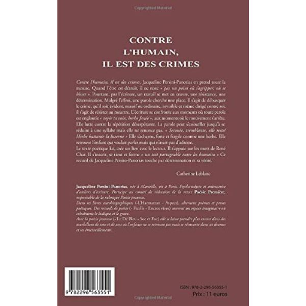 Contre l’humain, il est des crimes (Anglais) Broché, 1 novembre 2011, Édition française de Jacqueline Persini Panorias