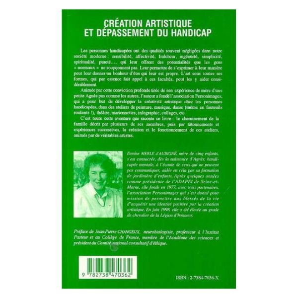 - Les personnes handicapées ont des qualités souvent négligées dans notre société moderne, qui leur permettent de s’exprimer à leur manière pour leur donner un bonheur d’être qui leur est propre. L’art sous toutes ses formes peut les y aider considérablement. Animée par cette conviction tirée de sa propre expérience de mère d’une petite Agnès pas comme les autres, l’auteur a fondé l’association Personimages, qui a pour but de développer la créativité artistique chez les personnes handicapées, dans des ateliers de peinture, musique, danse, théâtre, marionnettes, collages etc. C’est cette aventure que raconte le livre.