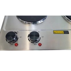 - There are 2 adjustable thermostats on the cooktop. Made of stainless steel.