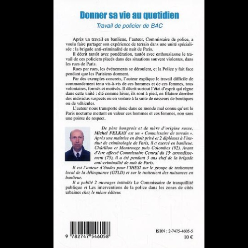 - L’auteur, Commissaire de police, a voulu faire partager son expérience de terrain dans une unité spécialisée : la brigade anti-criminalité de nuit de Paris.