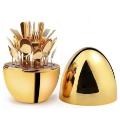 The light and luxurious egg-shaped cutlery set includes 6 forks, 6 knives, 6 spoons and 6 teaspoons, making it an excellent choice for families or restaurants.