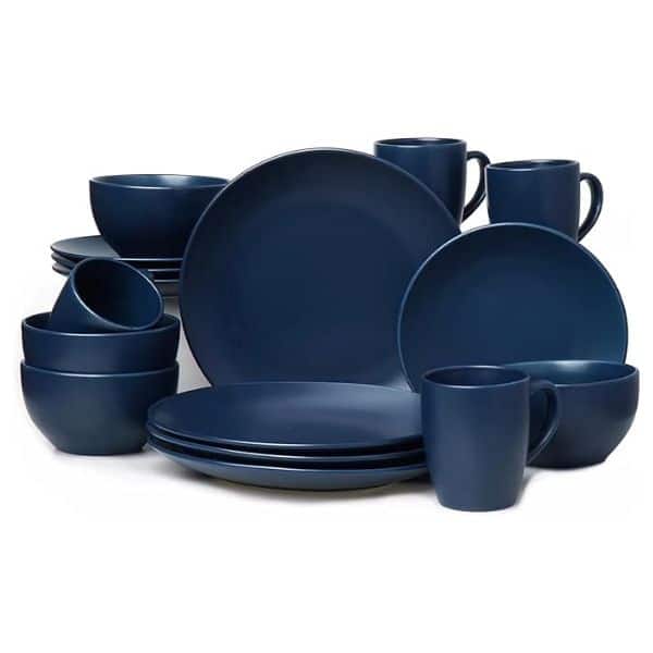 - This dinnerware set is made of stoneware, stoneware is made from a mixture of high firing temperatures, a thick structure and all-natural clay, for long-term beauty and durability. The plates are resistant to wear and the use of a knife and fork.