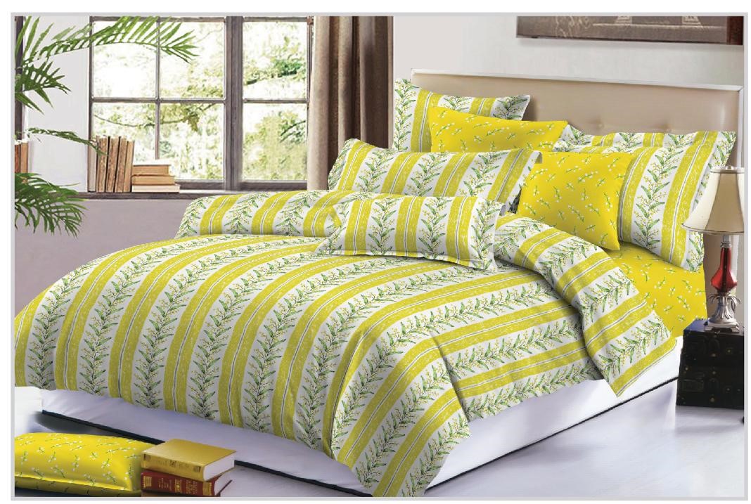 3-Seater Sheet Set 100% cotton, yellow-grey, flower pattern