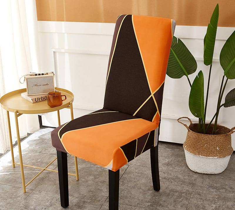 - A geometric patterned elastic dining chair slipcover is a piece of stretch fabric designed to cover and decorate a dining room chair.