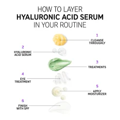 - We suggest using hyaluronic acid serum first, after cleansing, to help hydrate the skin.