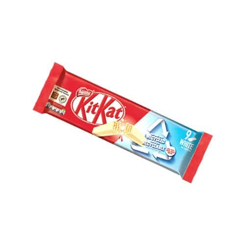 Unwrap a chocolate finger, break it in half and enjoy the crispy waffle biscuit covered in deliciously smooth KITKAT® white chocolate.