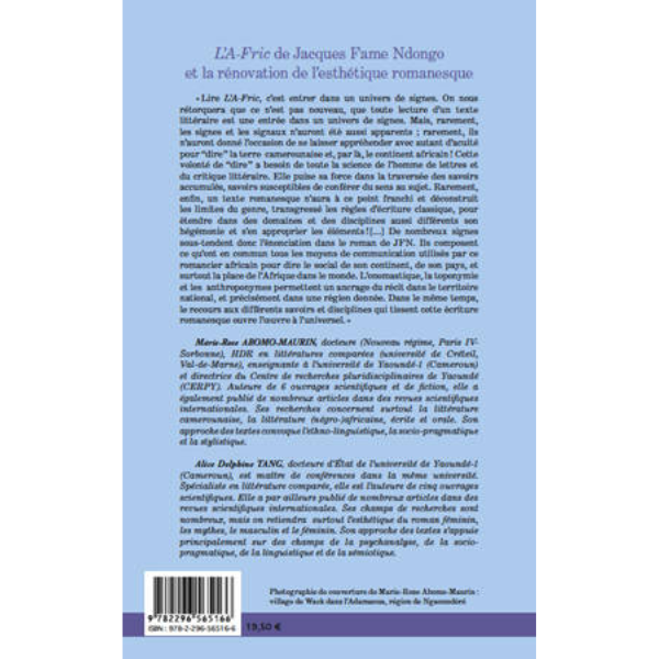 Lire L’A-Fric, c’est entrer dans un univers de signes (…) Mais rarement, les signes et les signaux n’auront été aussi apparents; rarement ils n’auront donné l’occasion de se laisser appréhender avec autant d’acuité pour « dire » la terre camerounaise(…) De nombreux signes (…) composent ce qu’ont en commun tous les moyens de communication utilisés par ce romancier africain pour dire le social de son continent, de son pays et surtout la place de l’Afrique dans le monde. »