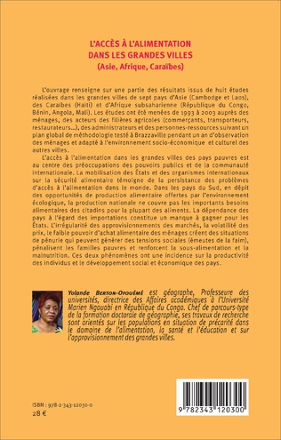 - Cet ouvrage est une synthèse sur la question alimentaire en milieu urbain, qui s’appuie sur des études réalisées dans des contextes aussi différents que ceux de grandes villes d’Afrique (Congo, Bénin, Angola, Mali), d’Asie (Cambodge et Laos) ou des Caraïbes (Haïti).