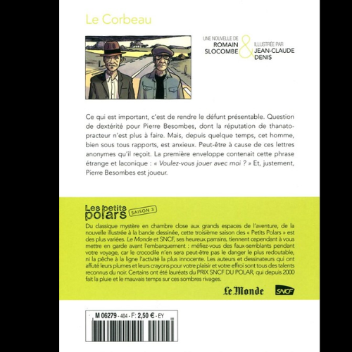 - Corbeau (Le) est le volume 4 de la série Petits Polars (Les) par Jean-Claude Denis et Romain Slocombe, paru en 2014. Selon Bande Dessinée Info, il n’en existe qu’une seule édition, publiée par Le Monde.