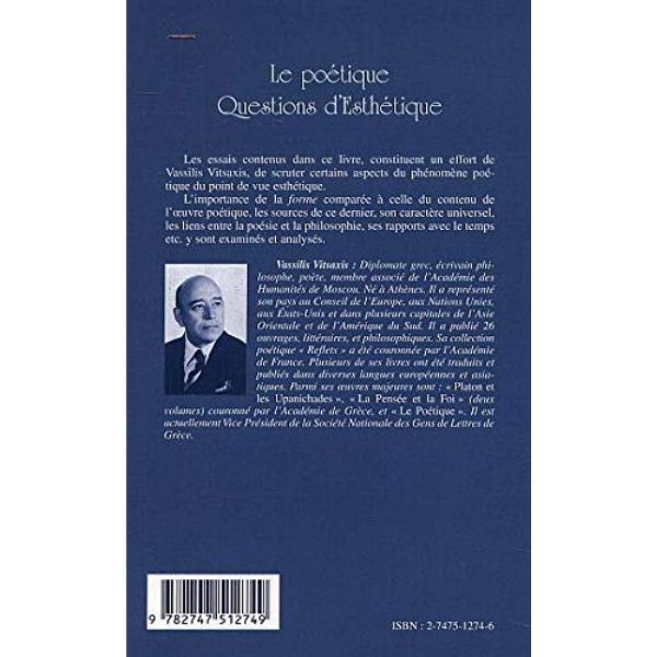 - Les essais contenus dans ce livre constituant un effort de Vassilis Vitsaxis, de scruter certains aspects du phénomène poétique du point de vue esthétique.