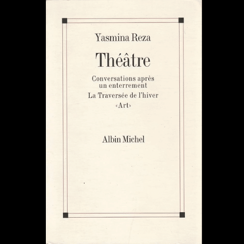 - Yasmina Reza a publié, aux éditions Albin Michel : Conversations après un enterrement (1987, théâtre), La Traversée de l’hiver (1990, théâtre), Art (1994, théâtre), L’Homme du hasard (1995, théâtre), Hammerklavier (1997, roman), Une désolation (1999, roman), Le Pique-nique de Lulu Kreutz (2000, scénario), Trois Versions de la vie (2000, théâtre), Adam Aberberg (2003, roman), Une pièce espagnole (2004, théâtre), Dans la luge d’Arthur Schopenhauer (2005, roman), Nulle part (2005, roman).