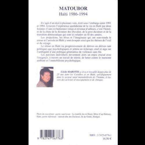 - Récit à quatre mains décrivant l’embargo qui a touché Haïti entre 1991 et 1994. C’est l’histoire de la chute de la dictature des Duvalier et de la transition démocratique qui sont ici relatées.
