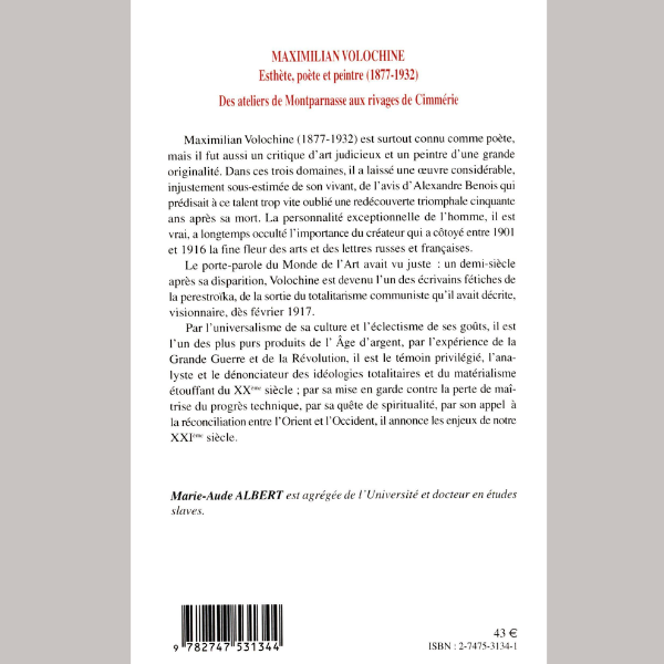 - Maximilien Volochine est surtout connu comme poète mais il fut aussi critique d’art judicieux et un peintre d’une grande originalité. Dans ces trois domaines, il a laissé une œuvre considérable, injustement sous-estimée de son vivant.