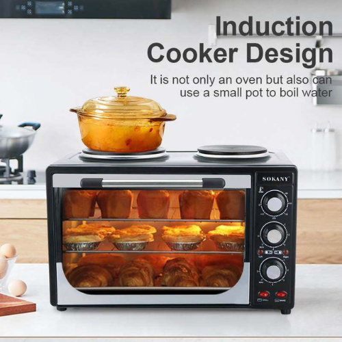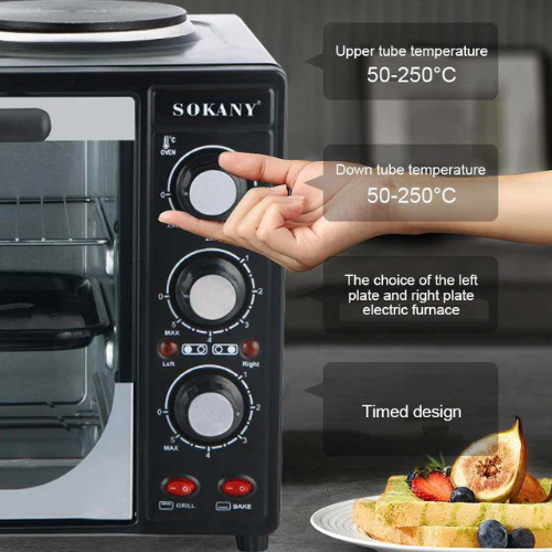 The 35 L SOKANY microwave features 4 heating elements (2 trays with 2-burner electric toaster oven for bread).
