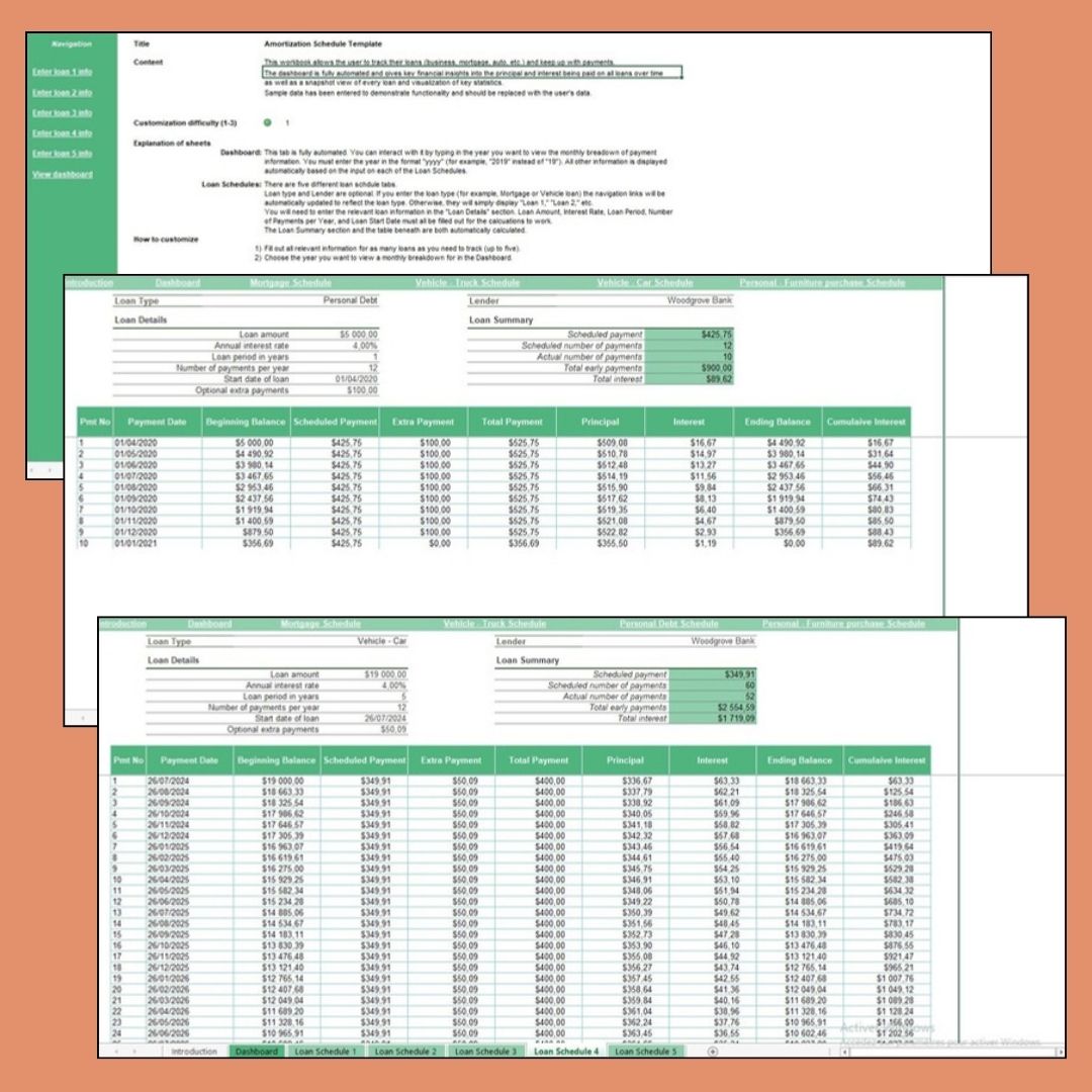 Accounting & Finance Excel template with focus on Loan Monitoring