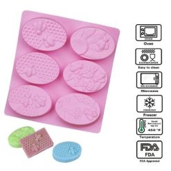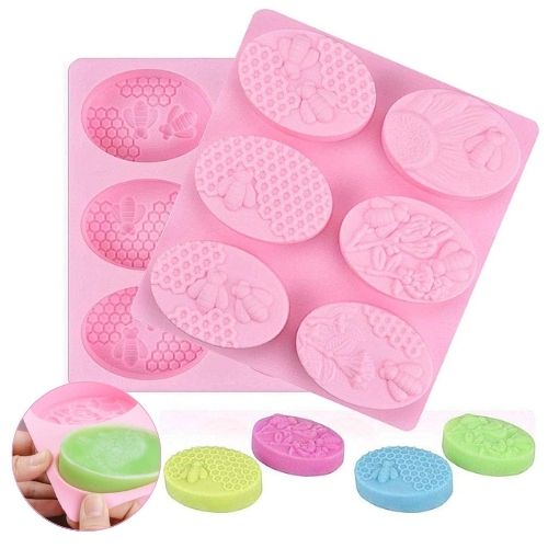 6 Cavity Oval Flexible Silicone Soap Mould with Bee Design