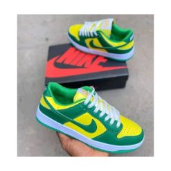 - The Nike Dunk Low SP Brazil has a two-tone look with green and yellow dominating the colours of Brazil. The upper is made of yellow leather, enhanced by green leather inserts that match the outsole. White accents on the laces and midsole contrast the design.