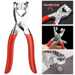 Supplied with 200 sets of snap fasteners in 10 colors, a pair of snap fastener pliers and a fastener installation tool.