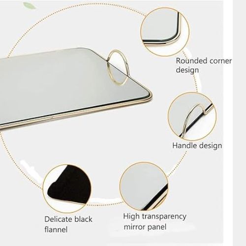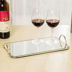 Plateau Décoratif Rectangulaire de Service avec Miroir et Poignée en Métal Doré 45 X 25 cm