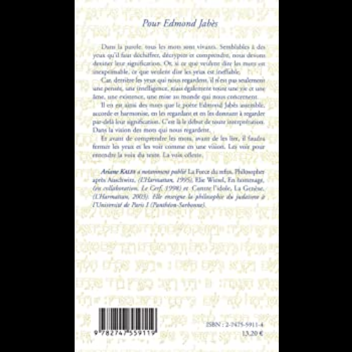 - Il en est ainsi des mots que le poète Edmond Jabès assemble, accorde et harmonise, en les regardant et en les donnant à regarder par-delà leur signification.
