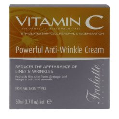 - Cette puissante crème anti-rides de Frulatte est enrichie en vitamine C pour maintenir les niveaux d’hydratation naturels de votre peau et réduire l’apparence des rides et ridules. Cette crème contient une forme oléosoluble de vitamine C qui maintient l’équilibre naturel de la peau. Son complexe nourrissant de peptides actifs et de puissants antioxydants protège la peau des dommages et la maintient douce et lisse. Les contours du visage apparaîtront plus fermes et plus définis, les rides et ridules seront repulpées et lissées laissant votre peau lisse, fraîche et plus jeune.