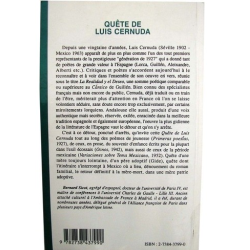 Quête de Luis Cernuda Primeras Poésies, Ocnos et Variaciones Sobre Tema Mexicanos
