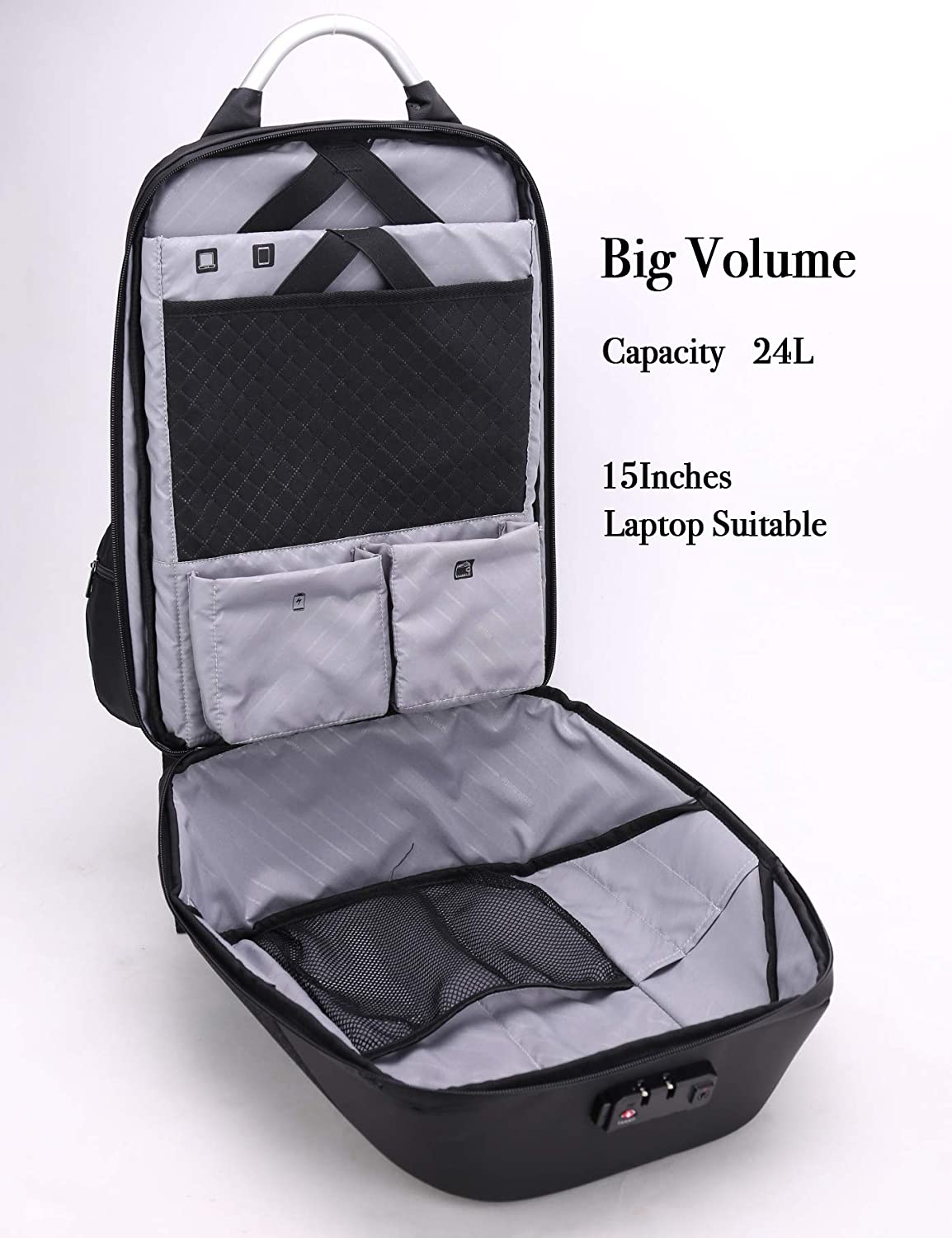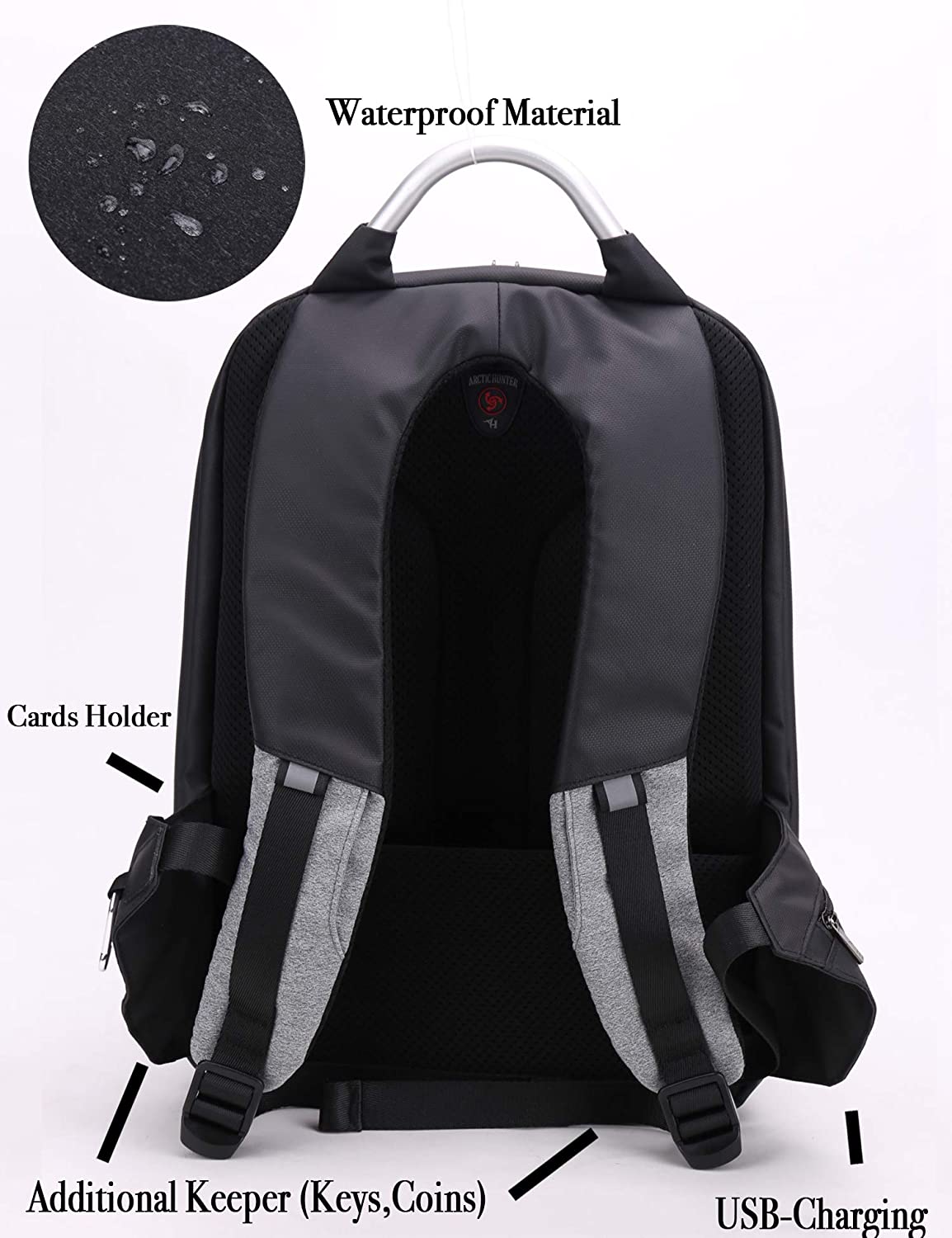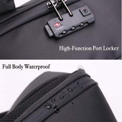 Sac à Dos Professionnel Etanche avec Port de Chargement USB Antivol Unisexes Gris