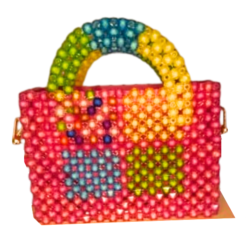 Treilli Handbag Pink-fushia pearls, blue, green and yellow ornaments