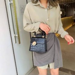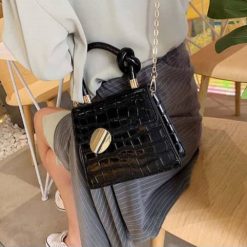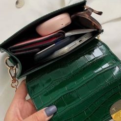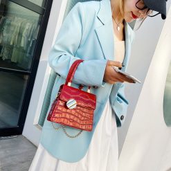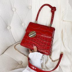 Crocodile Leather Shoulder Bags with Simple Chain for Women