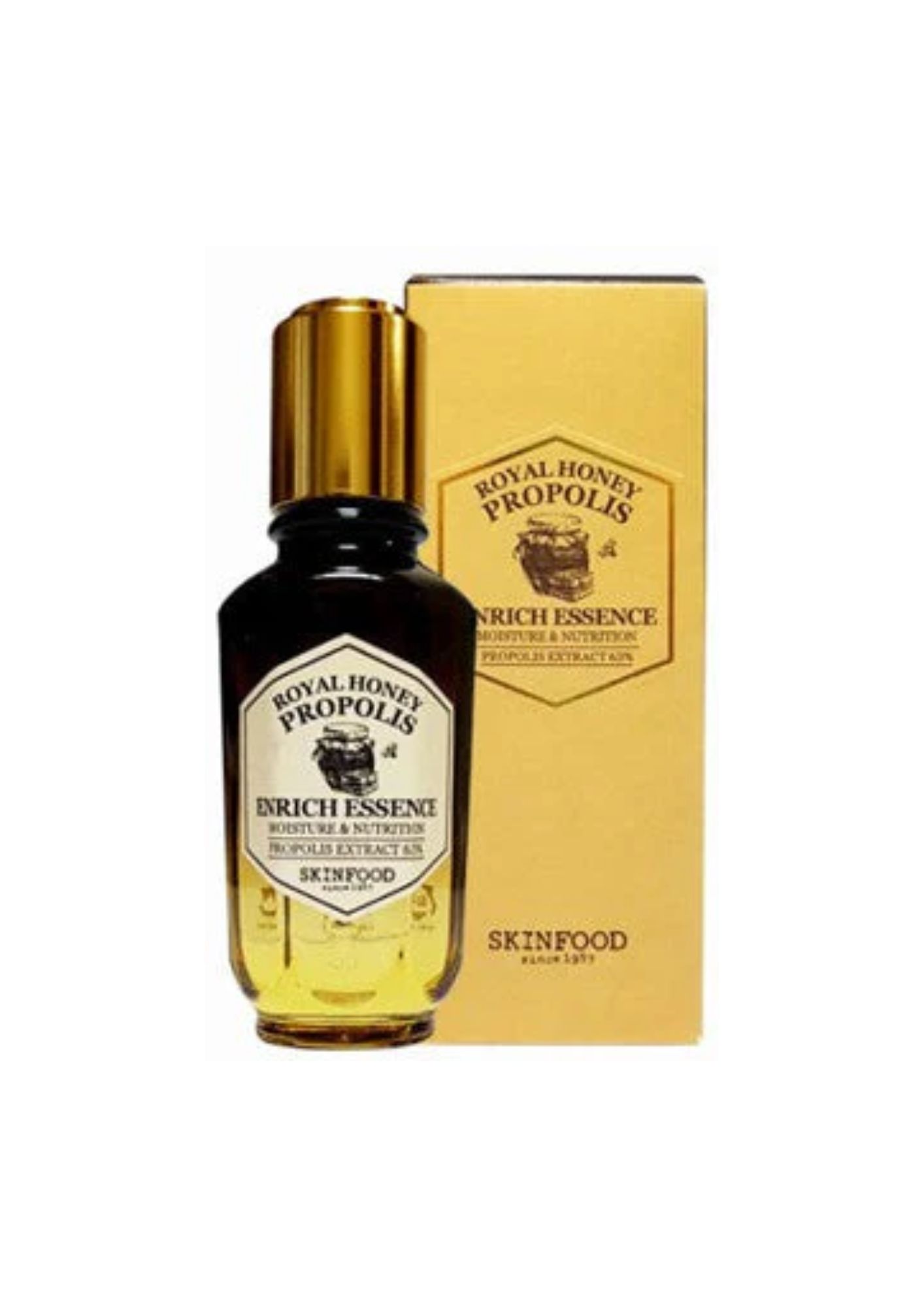 - Elevate your skincare routine with SKINFOOD’s Royal Honey Propolis Enrich Essence, a true elixir of health for your face. This highly concentrated serum derives its effectiveness from a unique 72-hour fermentation process, allowing the hive’s nutrients to penetrate deeper for enhanced efficacy.