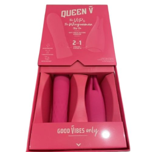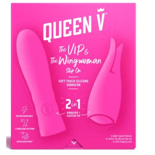 Sex Toys Vibrator with 7 vibration modes, waterproof, USB rechargeable, 2-in-1, silicone Queen V The VIP and The Wingwoman