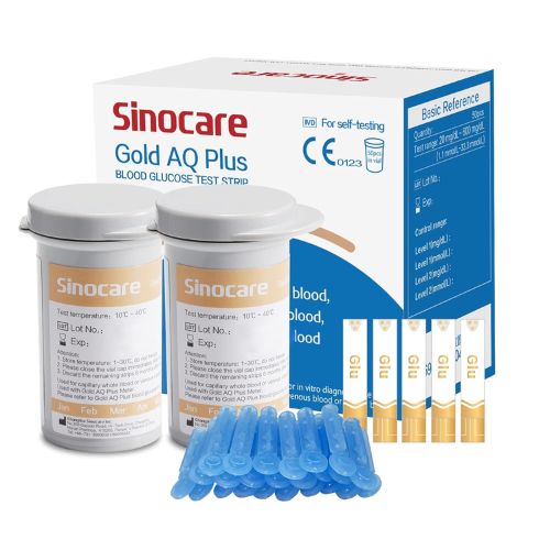 Sinocare Gold AQ Plus, Sinocare Gold AQ Plus Bandelettes de Test De Glycémie 50 pièces