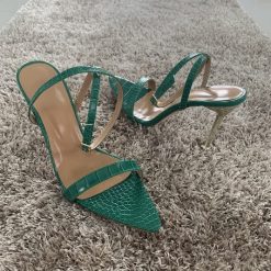 High heel sandals with pointed toe, ankle strap, leather