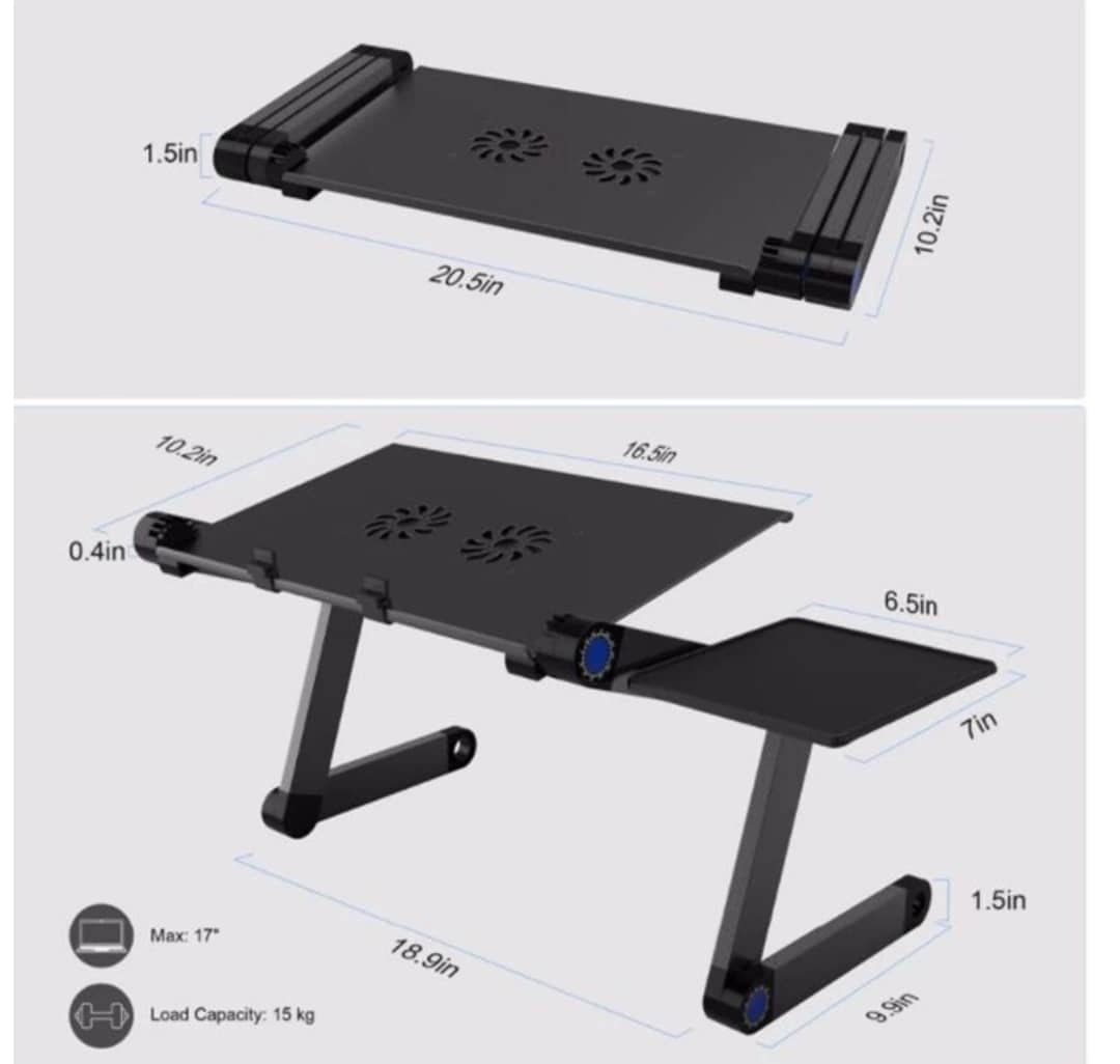 - Support réglable pour Ordinateur Portable avec 2 Ventilateurs intégrés
