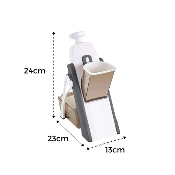 - This safe mandolin is revolutionary! You will be able to choose among 4 types of cuts (slices, fries, julienne, cubes) and 8 thicknesses (0.5 mm --> 8 mm).