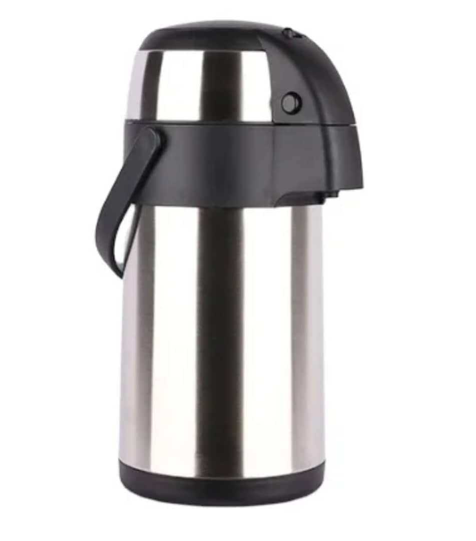 - This large coffeemaker is made of stainless steel inside and out to keep your drinks hot and cold for longer.